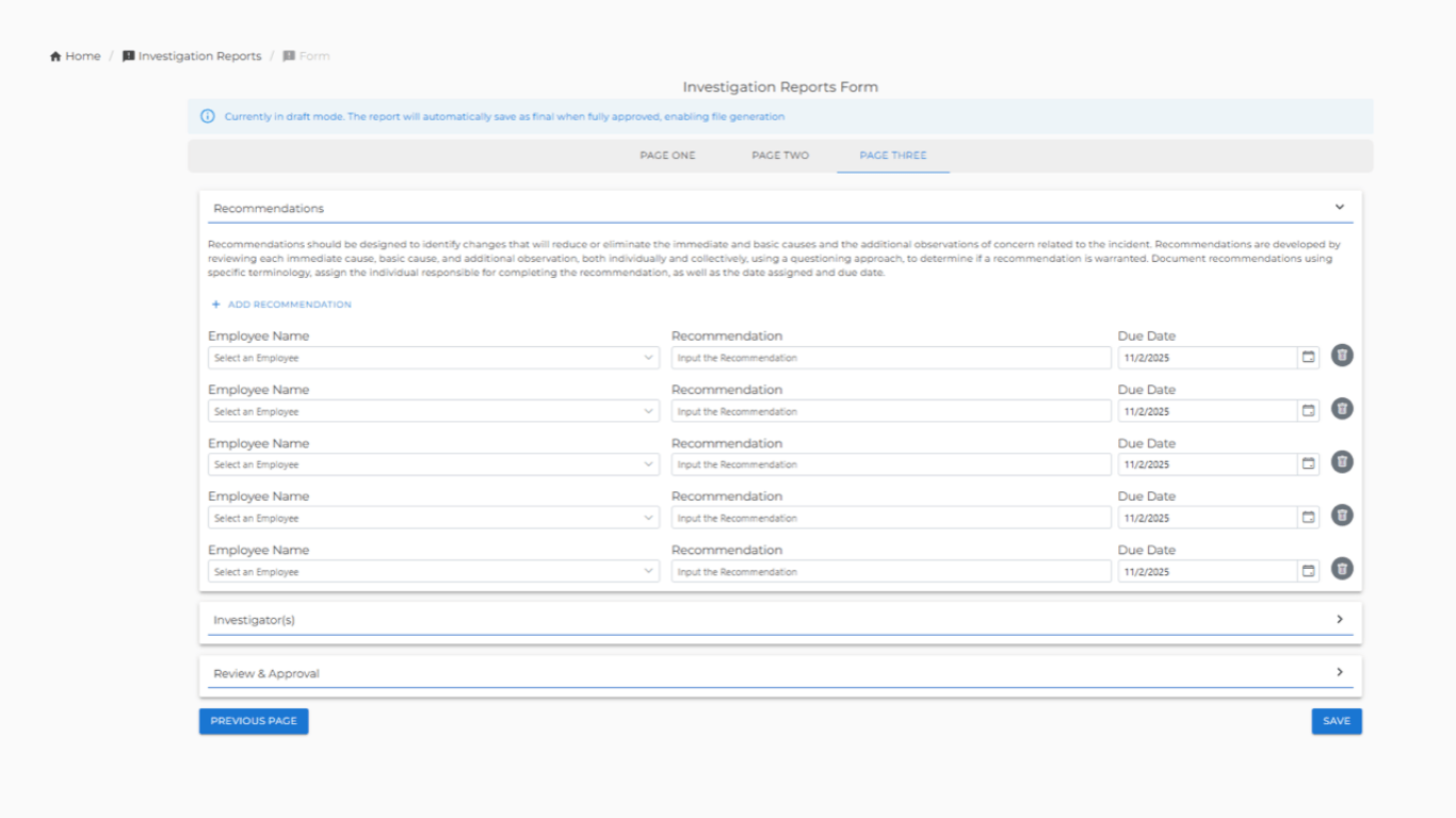 Log incidents and near-misses instantly from any device. Attach photos, assign investigations, and track every step with complete audit trails so nothing falls through the cracks.